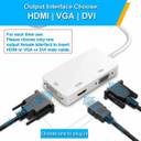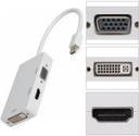 3 in 1 Mini Display Port to HDMI VGA Adapter DVI Cable (Projector, Hdtv, Display, White). DVI output, connect the DVI devices using a DVI cable. HDMI output, connect the HDMI devices using a HDMI cable. VGA output, connect the VGA devices using a VGA cable. Mini DisplayPort, for Mac Book Mac Book Pro Mac Book Air. Multiple 3-in-1 function, worth every cent! You can separately treat this multiple thunderbolt adapter as thunderbolt to HDMI adapter, thunderbolt to VGA adapter, thunderbolt to DVI adapter. Please choose only one output female interface for each connection. Thunderbolt (mini DP/ mini displayport) input male interface can insert into female thunderbolt port of MacBook, MacBook pro, iMac, MacBook air, Mac mini, surface book and pro series, Thinkpad carbon.1080P HD output for projector, monitor or HDTV at home or office.