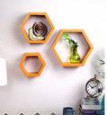 TechHark Pack of 3 Hexagonal Wall Self MDF (Medium Density Fiber) Wall Shelf (Number of Shelves - 3, Orange)