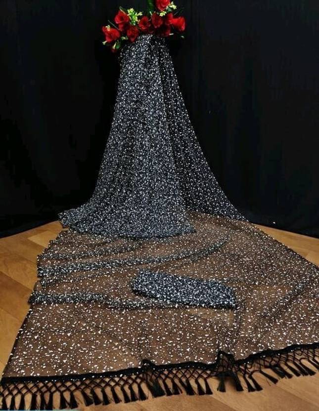 TECHNO WORLD Self Design Bollywood Net Saree (Black)