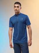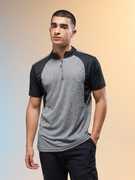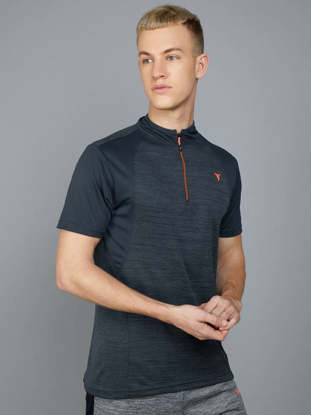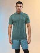 TECHNOSPORT Self Design Men Zip Neck Black T-Shirt