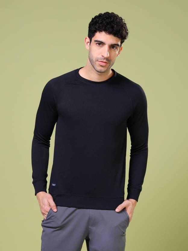 TECHNOSPORT Men Solid Crew Neck Polyester Black T-Shirt