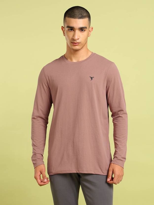 TECHNOSPORT Men Solid Crew Neck Polyester Brown T-Shirt