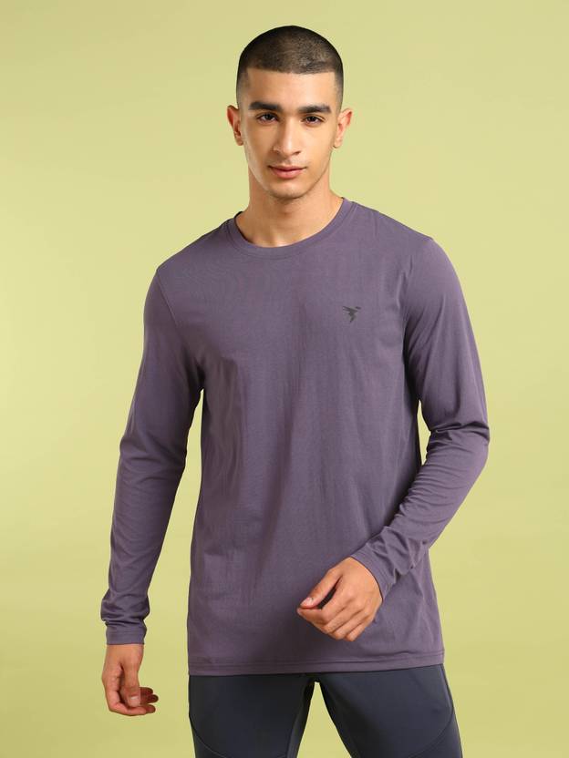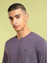 TECHNOSPORT Men Solid Crew Neck Polyester Purple T-Shirt