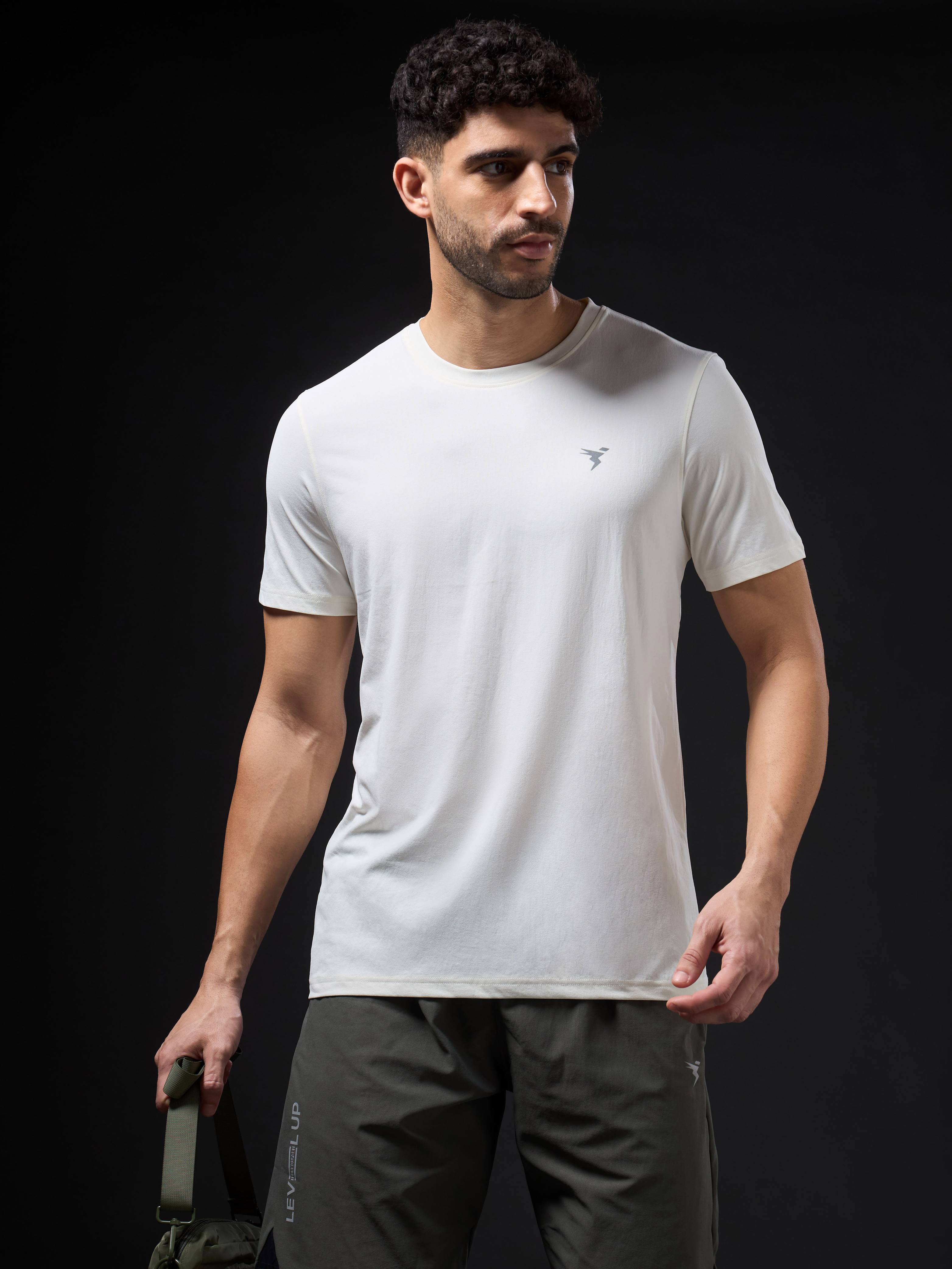 TECHNOSPORT Men Solid Crew Neck Polyester White T-Shirt