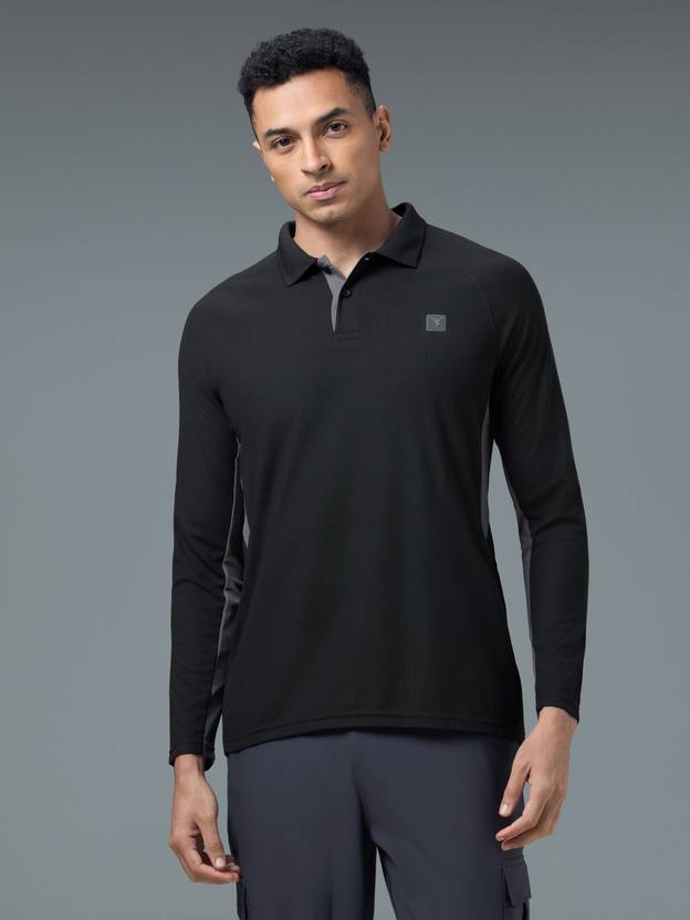 TECHNOSPORT Solid Men Polo Neck Black T-Shirt