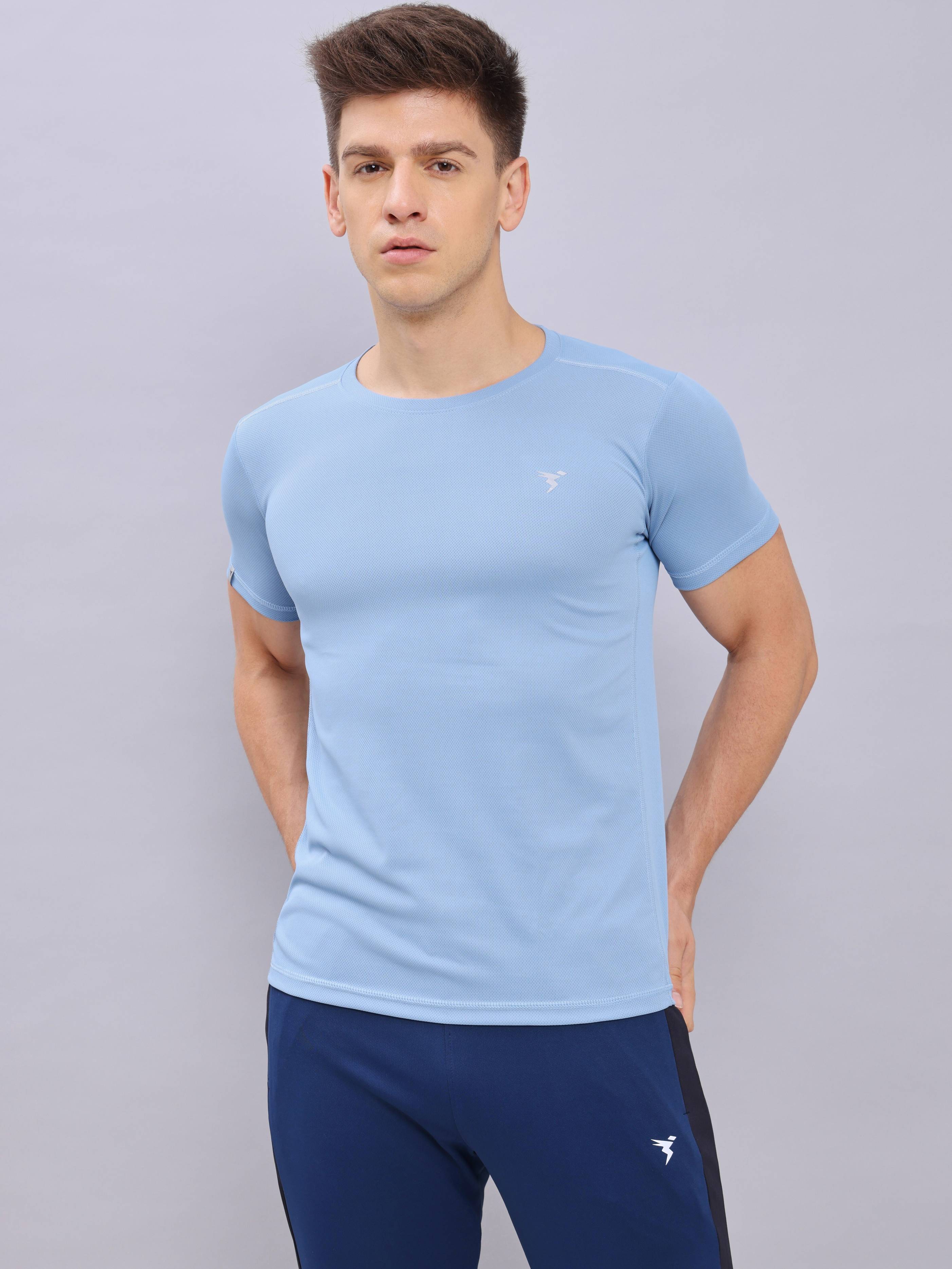 TECHNOSPORT Men Solid Round Neck Polyester Blue T-Shirt