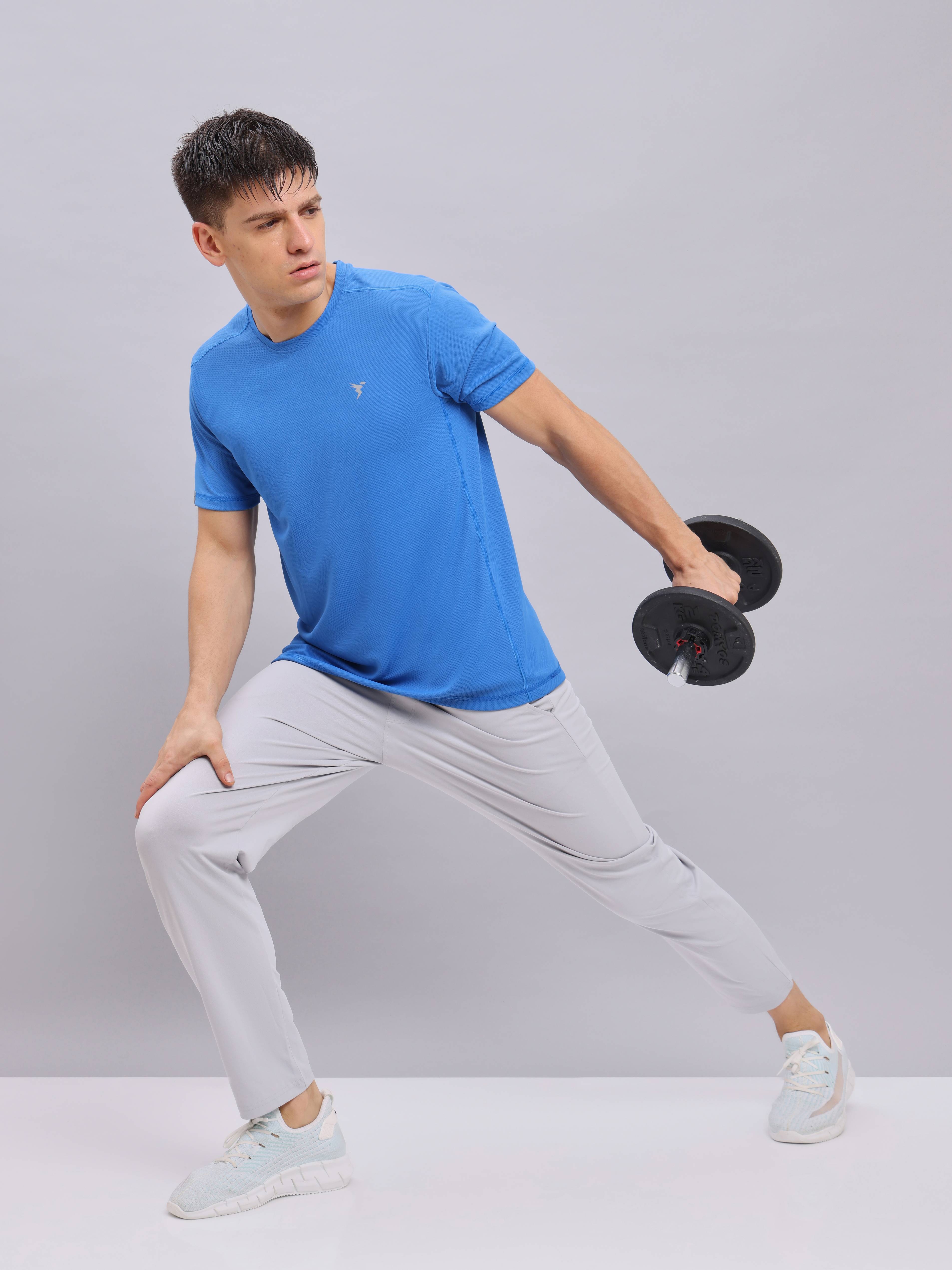 TECHNOSPORT Men Solid Round Neck Polyester Blue T-Shirt