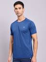 TECHNOSPORT Men Solid Round Neck Polyester Blue T-Shirt