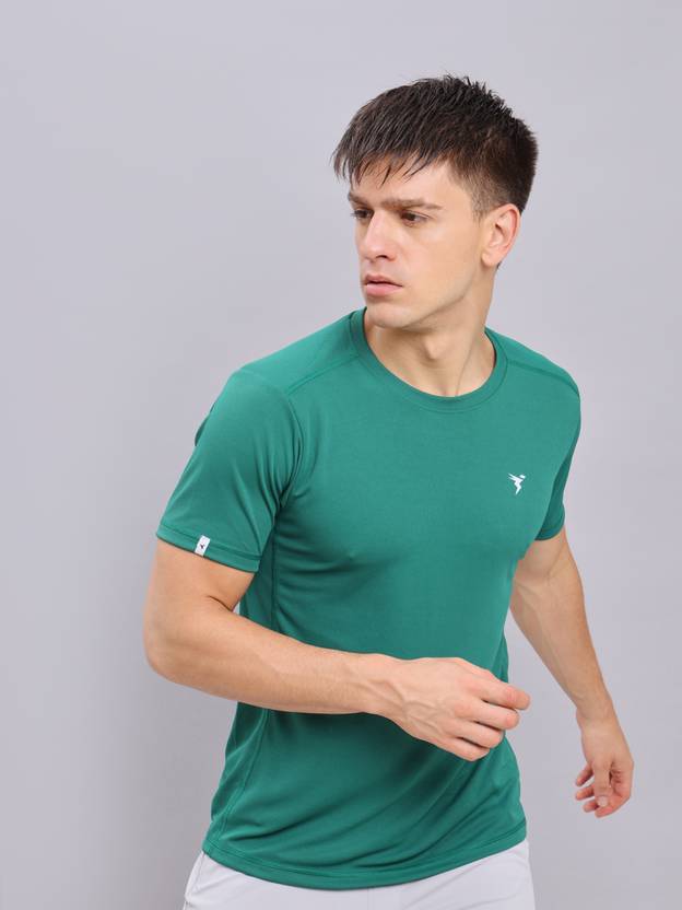 TECHNOSPORT Solid Men Round Neck Green T-Shirt