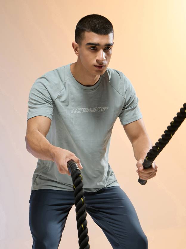 TECHNOSPORT Solid Men Round Neck Light Blue T-Shirt