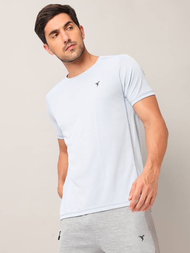 TECHNOSPORT Men Solid Round Neck Polyester Light Blue T-Shirt