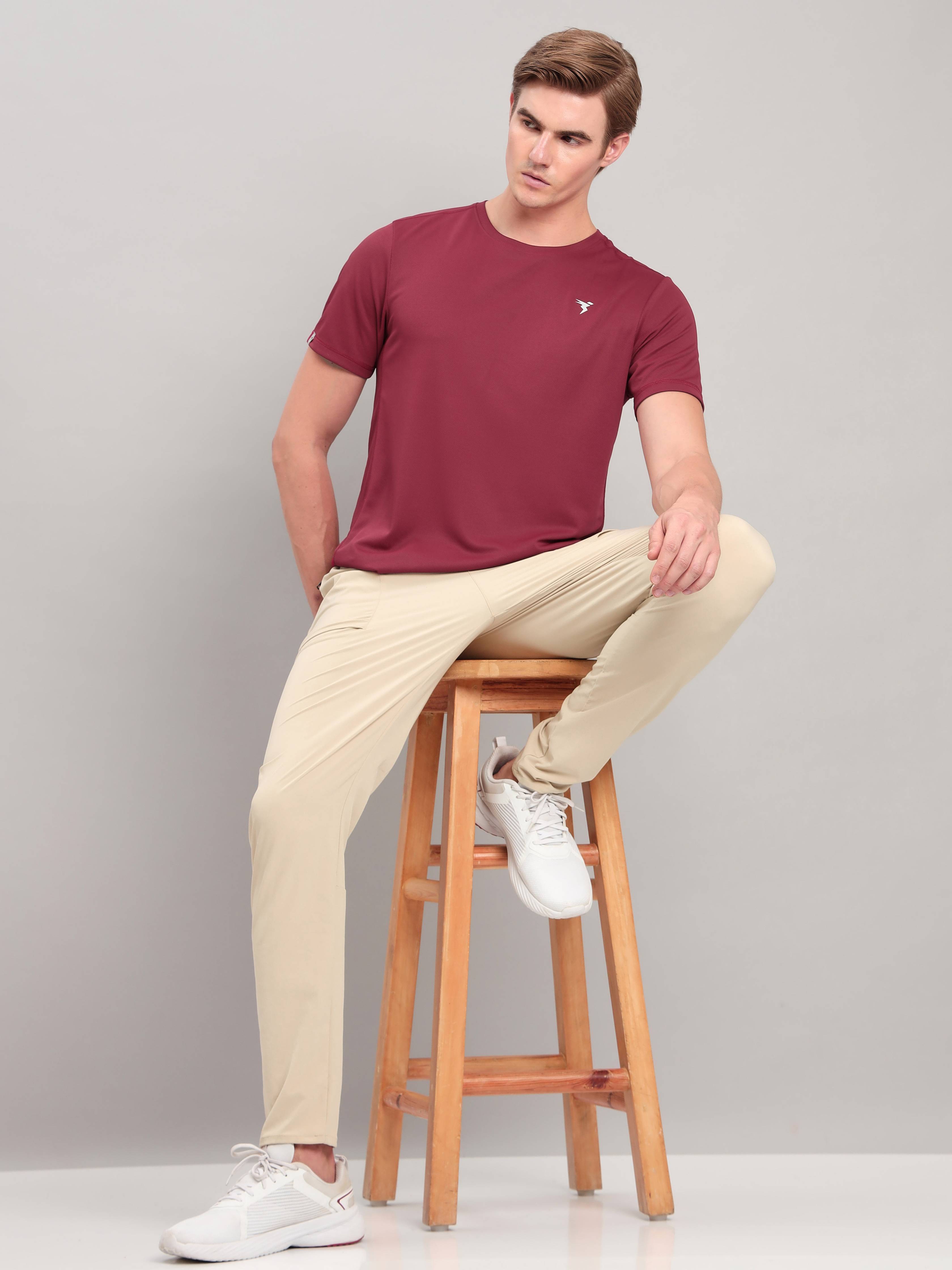 TECHNOSPORT Men Solid Round Neck Polyester Red T-Shirt