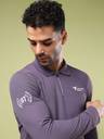 TECHNOSPORT Men Solid Zip Neck Polyester Purple T-Shirt