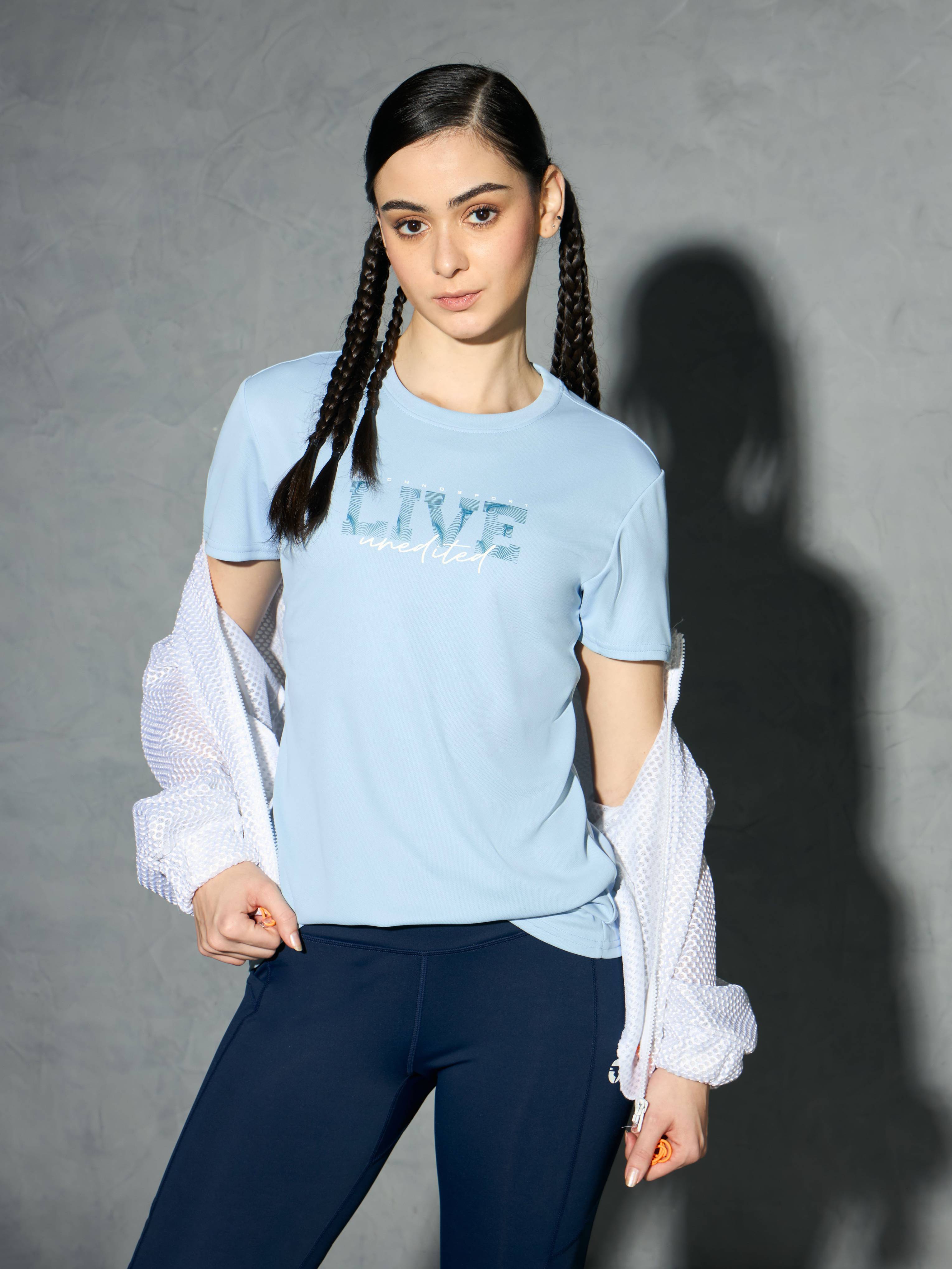 TECHNOSPORT Solid Women Blue Track Pants