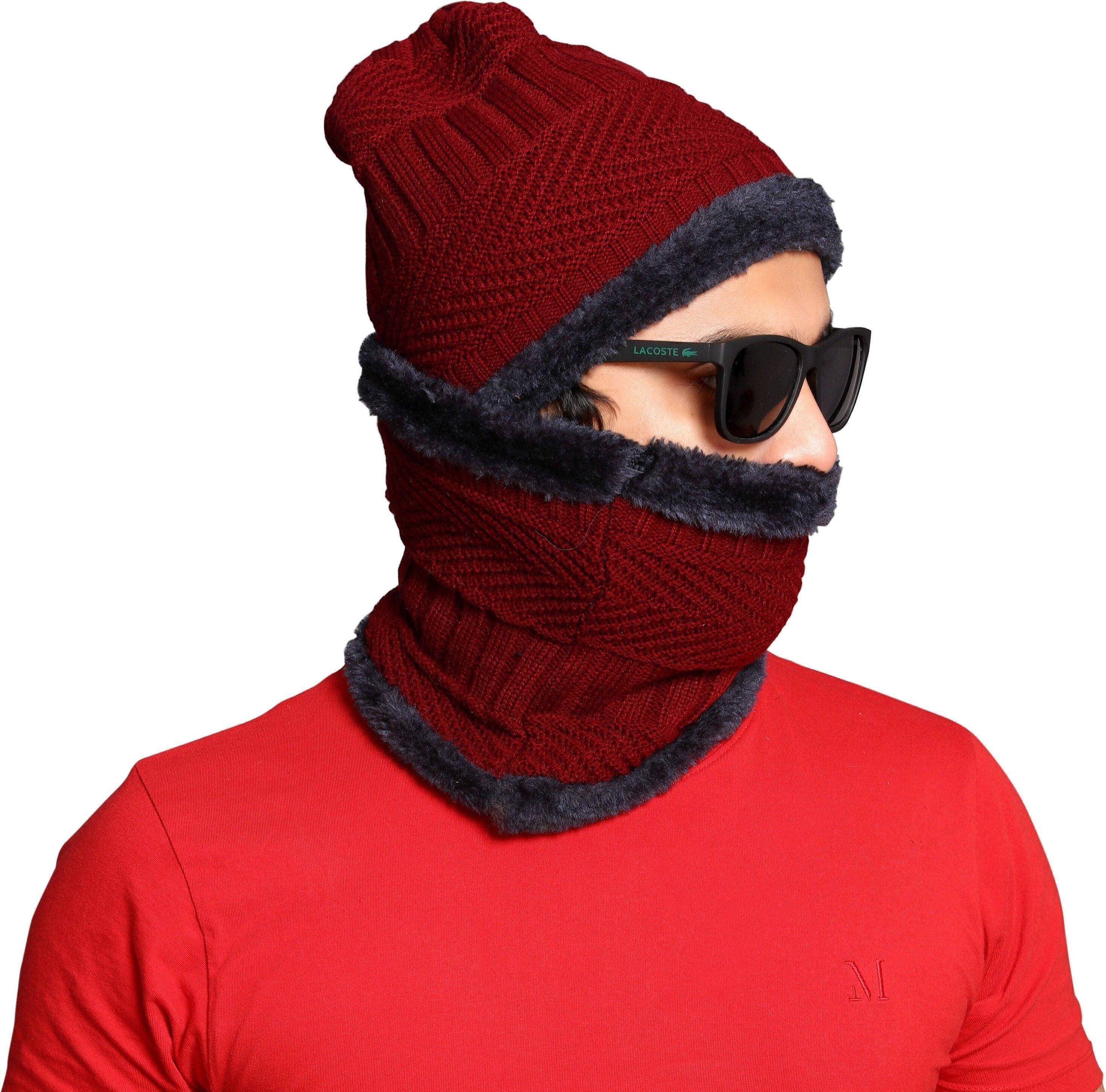 Winter Woolen Warm Unisex Bannie Knit Skull Cap with Neck Warmer