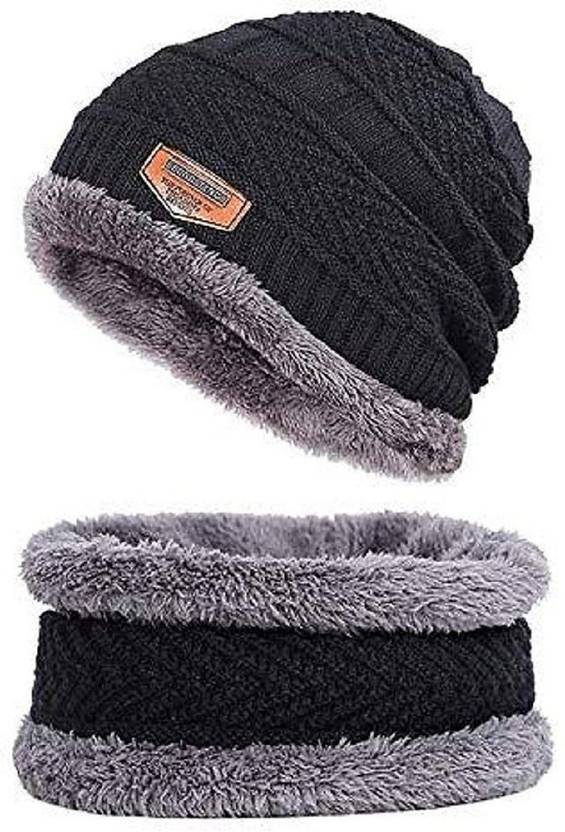 Winter Woolen Warm Unisex Bannie Knit Skull Cap with Neck Warmer