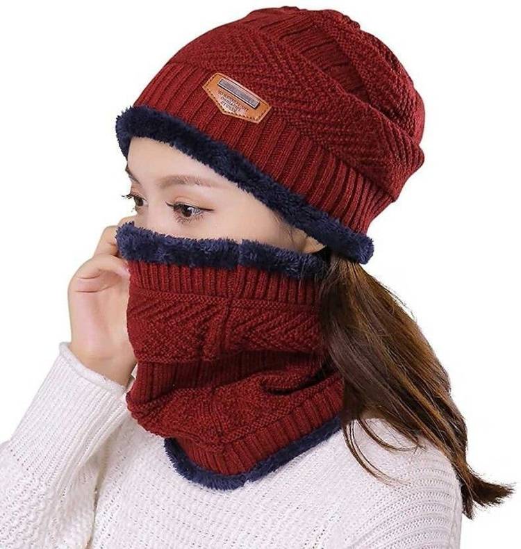Uniquely Knitted Constructed With Simple And Fashion Knit Style Which Is Made Of One Layer Of Thick Knitting Fabric And One More Layer Of Soft And Warm Fux Fur Line, Fabseasons Beanie / Skull Caps & Muffler Combo Is Perfectly Suitable For Winter To Keep You Warm And Comfortable