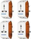 Techson 6A 3 Pin Multi Plug Socket Travel Adapter with Universal Socket PACK-4 ,,Multi Plug 3 Pin Extension Socket Three Pin Plug (White)