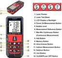 High accuracy and wide measuring range up to 40m. Quick measurement of distance, area and volume with one button operation. Automatic calculation of area and volume. Indirect measurement by Pythagorean theorem. Min / Max distance tracking (display value). Easy addition / subtraction of measurement. Set up front / rear benchmark. Switchable among metre (m), inch (in), feet (ft). Large LCD with backlight. Display illumination and multi-line display(2 lines). Bubble level equipped as a spirit level tool. Auto correction and error report technology. Battery status indication. Widely used in construction and industries, especially in large areas such as rooms, apartments, buildings, real estates, factories, warehouses, etc.High accuracy and wide measuring range up to 40m. Quick measurement of distance, area and volume with one button operation. Automatic calculation of area and volume. Indirect measurement by Pythagorean theorem. Min / Max distance tracking (display value). Easy addition / subtraction of measurement. Set up front / rear benchmark. Switchable among metre (m), inch (in), feet (ft). Large LCD with backlight. Display illumination and multi-line display(2 lines). Bubble level equipped as a spirit level tool. Auto correction and error report technology. Battery status indication. Widely used in construction and industries, especially in large areas such as rooms, apartments, buildings, real estates, factories, warehouses, etc. Product Name: Digital Distance Meter Material: Plastic, Electronic Parts Main Color: Red, Black Size: 120x 50 x 30mm / 4.7 x 2 x 1.2inch(L*W*T) Net Weight: 212g(7.5oz) Measure Range: 40m/131ft Accuracy: 1.5mm Measure Unit: M/ in /ft Battery Type: 2 x AAA 1.5V (not - included) Laser Class II Maximum radiant power less than 1mW Emitted wavelength: 635nm-650nm Package Include: 1 x Digital Laser Distance Meter 1 x Carry Case Pouch 1 x English Op