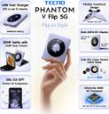 Discover the remarkable characteristics of the Tecno Phantom V Flip smartphone, which is revolutionising mobile innovation. With 45 W ultra-fast charging, you can charge your device up to 33% faster in only 10 minutes, so you're always prepared. It is long-lasting, resistant to 400,000 folds, and has improved crease control for optimal results. With the three-lens FreeCam system, which has RGBW-enabled night shot technology for breathtaking shots even in low light, you can capture life's moments with clarity. Experience smooth performance and seamless communication with the Dimensity 8050 5G chipset. On the roomy 17.52 cm AMOLED screen with a 120 Hz LTPO display and adjustable refresh rate, lose yourself in colourful images. The secondary screen adds style and utility, and the hassle-free hovering capability improves usability.