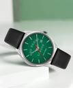 , LEYTONN, 40 mm Men's Stainless Steel Silver-Tone Round Case Watch with Green Dial and Black Leather Strap. 1 Year warranty against manufacturing defects. Acrylic Glass.