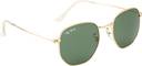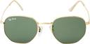 Ted Smith Unisex Hexagonal Sunglasses feature a chic gold frame paired with dark green glass lenses. With a bold hexagonal design, these sunglasses offer a trendy and sophisticated look, providing UV protection for both men and women.