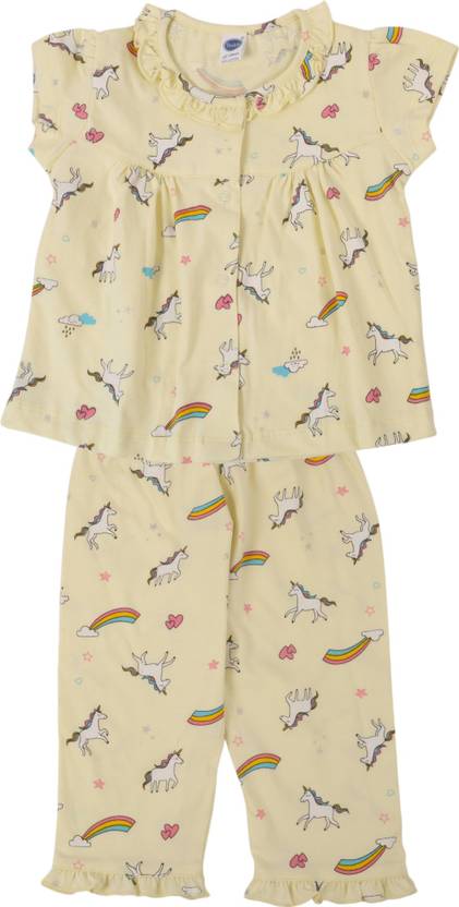 Teddy Baby Girls Half Sleeves Night Suits with Capri, Girls Night Dress, Pajama Set, Cotton Sleepwear (Premium Cotton Hosiery Material). The Top features amazing graphic print on top and pajama which has a soft elasticated waist ensuring maximum comfort. It is made of soft and comfortable fabric which keeps your kid warm and snug all night. These Designer Designer Night Dress are soft, cozy & comfortable. Can be used as Gym Wear, night wear, Casual wear, Night Dress, sleep wear and more. These will be an ideal pick for your kids to keep them at ease the whole day & night. Also makes a great gift for your loved ones
