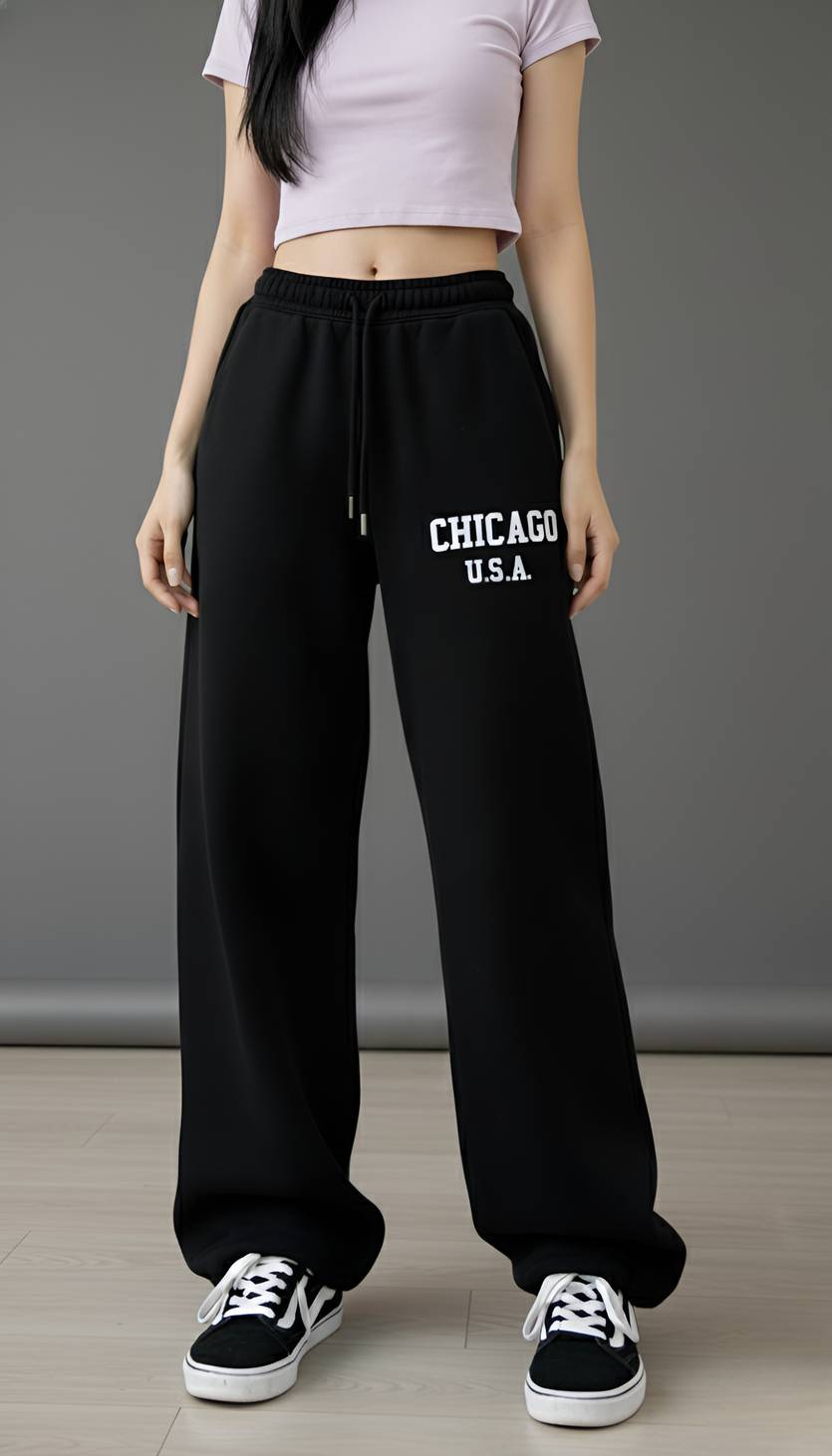Embrace the ultimate comfort and a bold street aesthetic with these Chicago U.S.A. Wide-Leg Sweatpants. Merging retro athletic style with a modern, oversized fit, these trousers are a must-have for a cool, relaxed look.