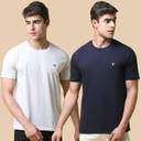 Tee Projekt Pack of 2 Men Solid Round Neck Cotton Blend White T-Shirt