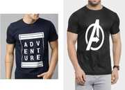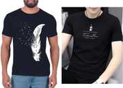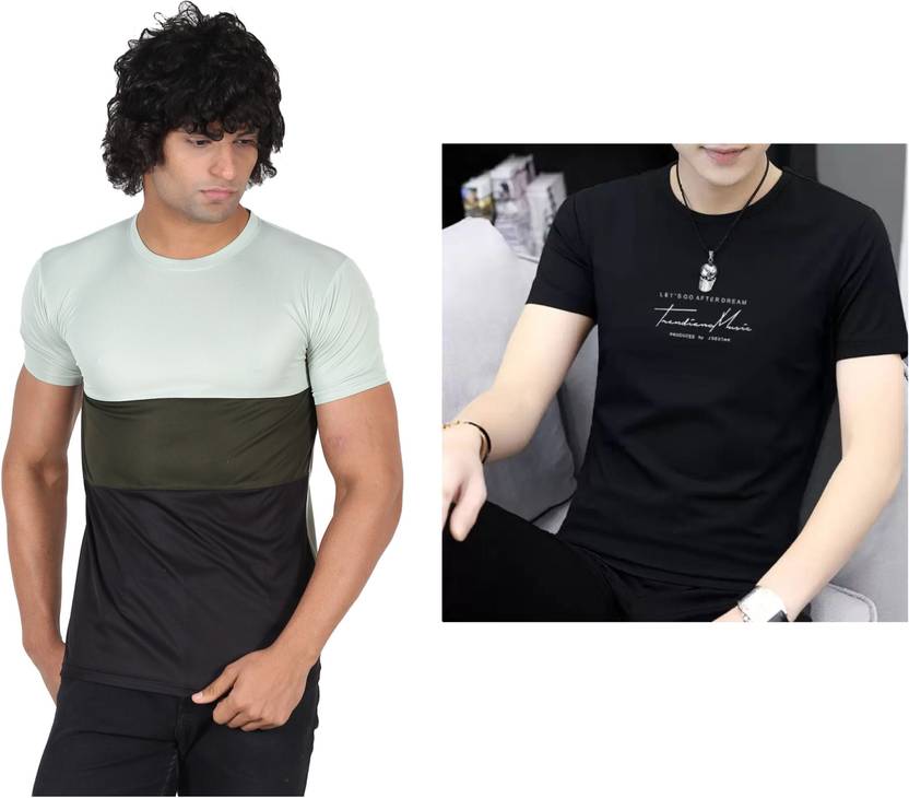 TEE TREE Printed Men Round Neck Light Green, Black T-Shirt
