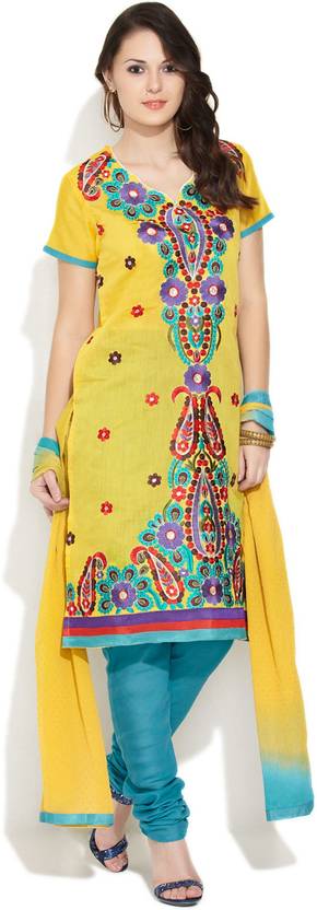 TEEJĀ Unstitched Cotton Blend Salwar Suit Material Self Design