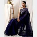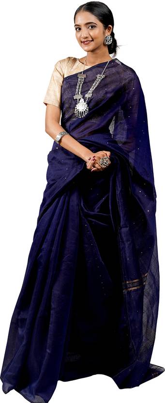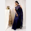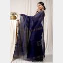 Our Indigo Blue Box handloom box sequin saree is the epitome of grace! This saree features shiny lines of sequins throughout the fabric that will give a glowing look this season. Style this up with dainty gold jewelry for a classy look.