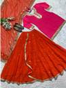 Embroidered Stitched Lehenga & Crop Top (Orange, Pink)