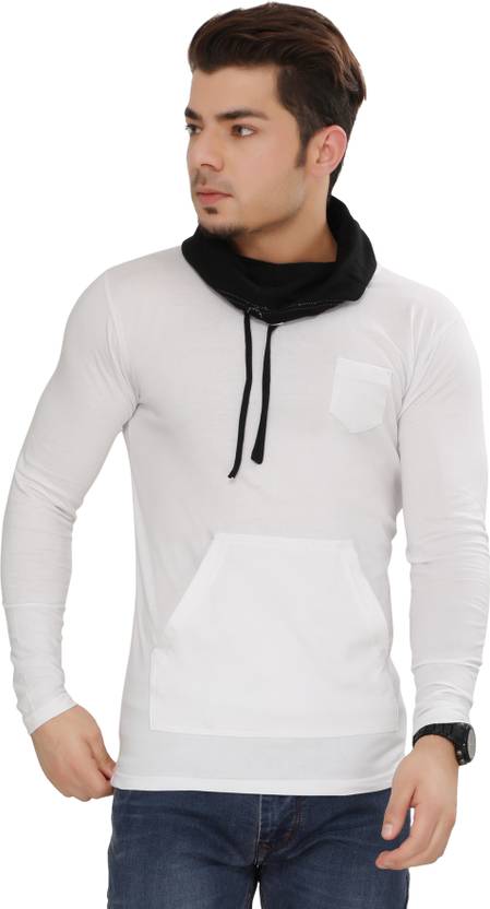 Tees Collection Solid Men Hooded Neck White T-Shirt