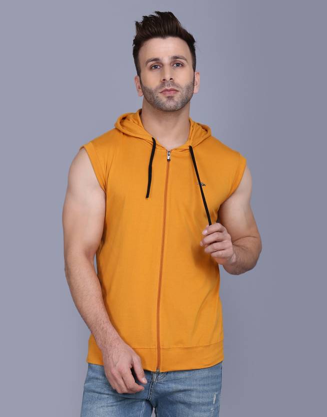 Tees Collection Solid Men Hooded Neck Yellow T-Shirt