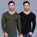 Tees Collection Solid Men V Neck Multicolor T-Shirt