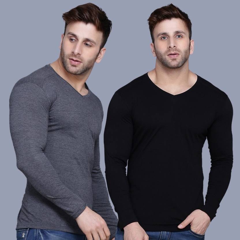 Tees Collection Pack of 2 Men Solid V Neck Pure Cotton Multicolor T-Shirt