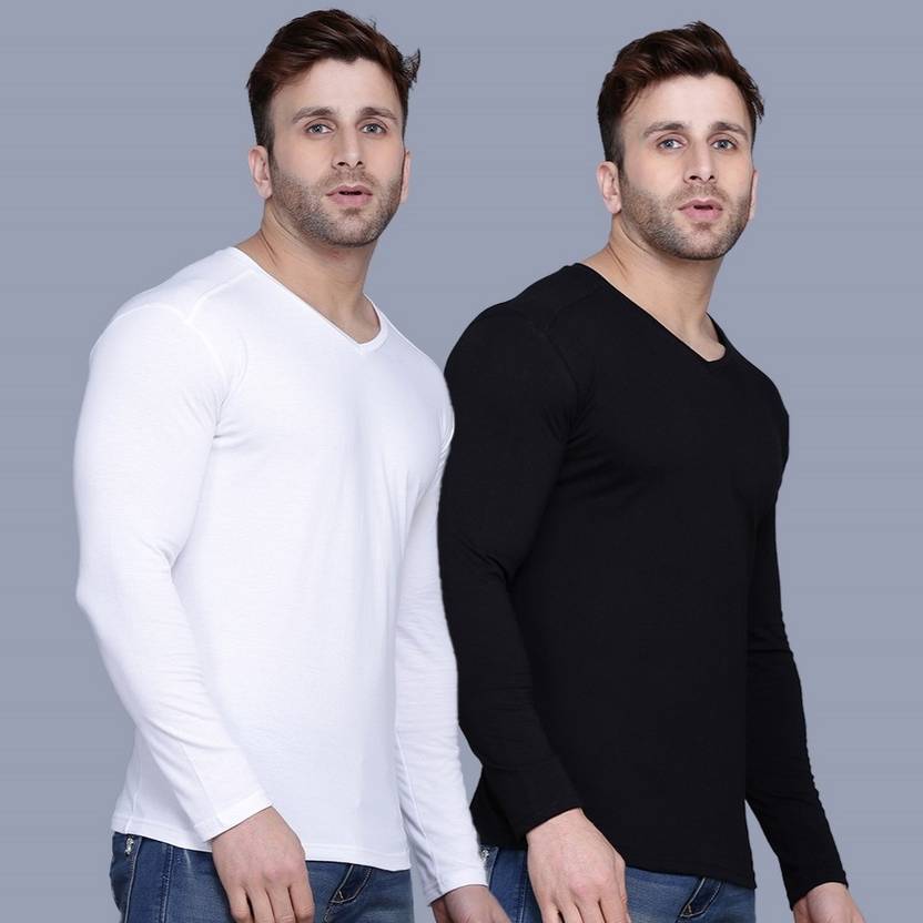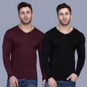 Tees Collection Solid Men V Neck Multicolor T-Shirt