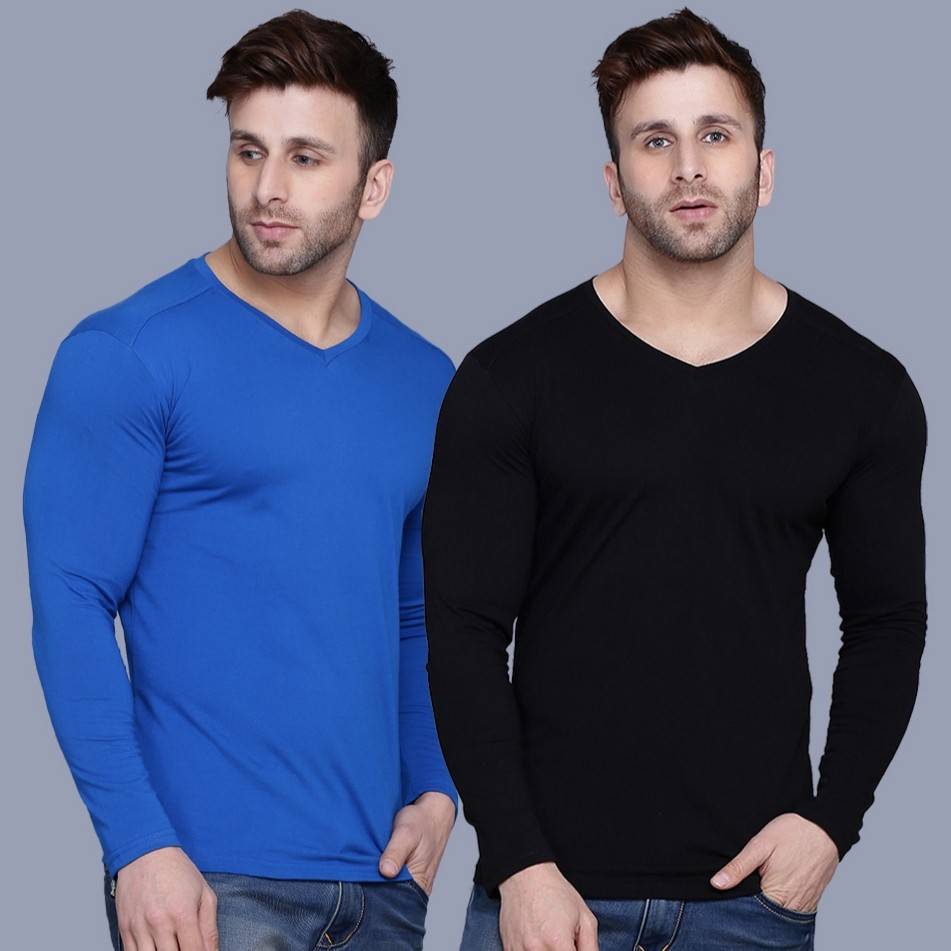 Tees Collection Pack of 2 Men Solid V Neck Pure Cotton Multicolor T-Shirt