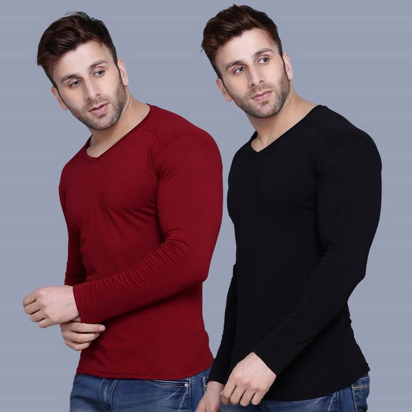 Tees Collection Solid Men V Neck Multicolor T-Shirt