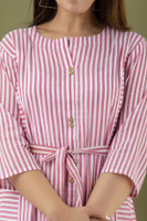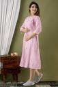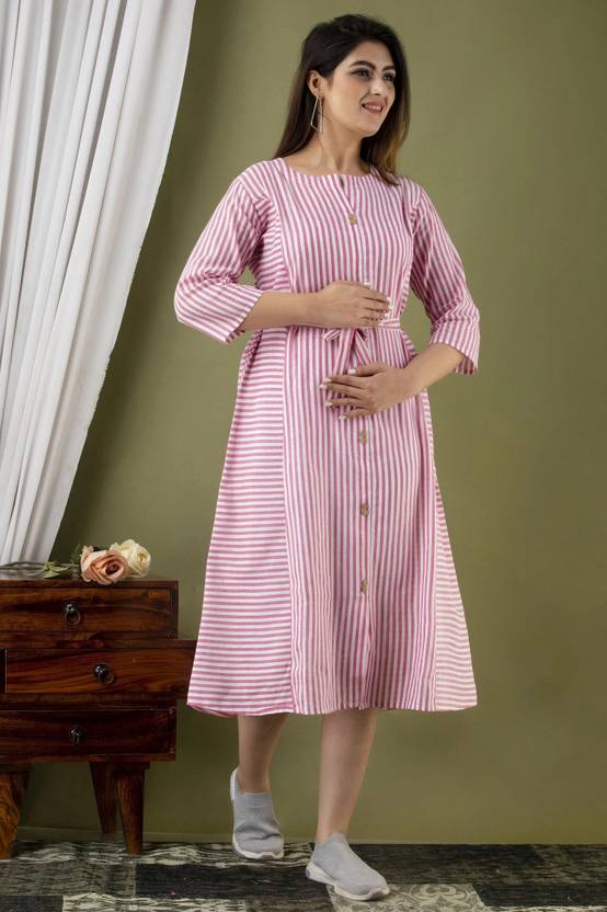 Sporting three-fourth sleeves, this maternity dress is tailored to provide the ideal blend of style and comfort. The sleeves offer ample coverage while ensuring ease of movement. Made from high-quality cotton, the fabric is soft, breathable, and gentle on the skin, making it suitable for all-day wear. Moreover, this dress is specifically designed to accommodate your growing bump, ensuring a comfortable fit throughout your pregnancy.