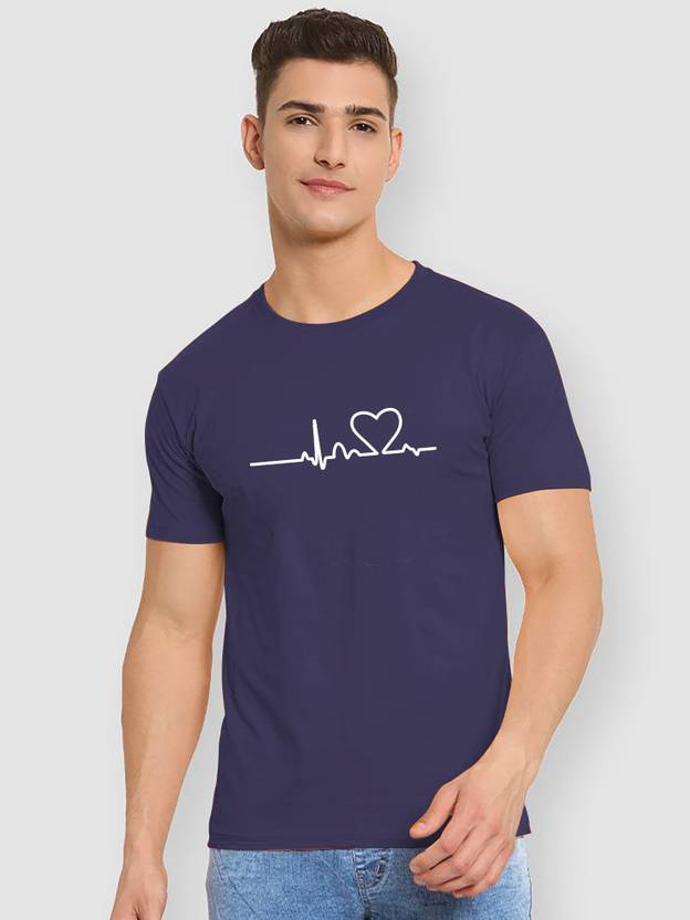 Men Printed Round Neck Cotton Blend Blue T-Shirt