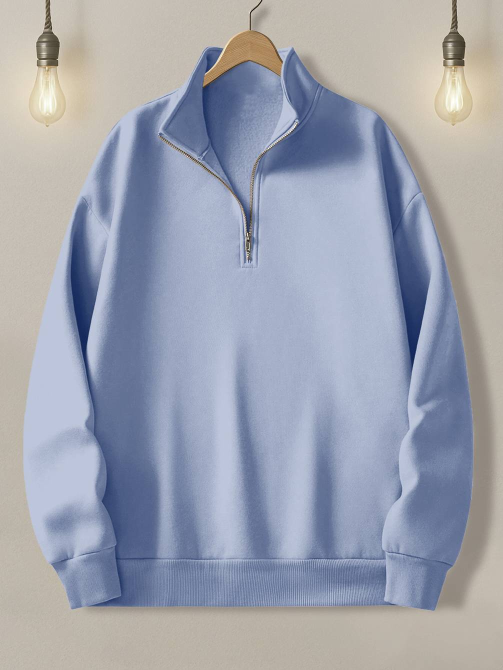 Stay cozy & stylish with Fashion and Youth's Half-Zip Cotton Fleece Sweatshirt. Crafted from soft, breathable fleece, it offers perfect warmth without bulk. Its clean, lightweight design is ideal for layering over tees or under jackets. Perfect for brisk walks or lounging, this versatile pullover combines comfort & modern style effortlessly. Your winter essential.