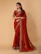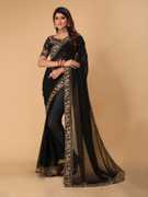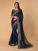Tejal Creation Solid/Plain Bollywood Georgette Saree (Blue)
