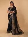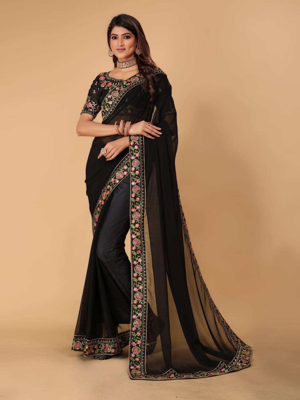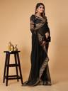 Crystallfashion Self Design Bollywood Georgette Saree (Black)