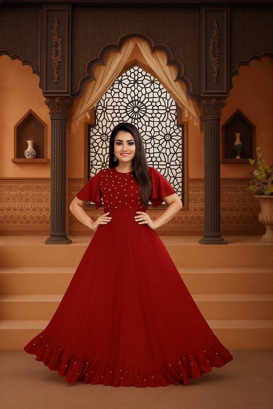 Rayon Blend Stitched Anarkali Gown (Maroon)