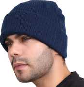 teknik Unisex Soft Wool Winter Cuff Beanie Cap (Air Force Blue, Free Size, Pack of 1) Self Design Beanie Cap