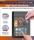 Amazon Kindle Fire HDX 2013 (7 Inch) Screen Guard is made of Flexible Shatterproof 9H Hardness Nano Fiber & not Glass. This Amazon Kindle Fire HDX 2013 (7 Inch) Screen Protector has rounded edges for precise fit. Amazon Kindle Fire HDX 2013 (7 Inch) Tempered Glass has Glossy 9H hardness Layer. Screenguard for Amazon Kindle Fire HDX 2013 (7 Inch) has Oleophobic Layer that prevents fingerprints & ensures clarity with original touchscreen experience. Tempered Glass for Amazon Kindle Fire HDX 2013 (7 Inch) Tempered Glass Screen Protector is slightly smaller from all sides that ensures it to be Case & Back Cover friendly, & also to avoid bubbles due to curved edges of tablet screen hence this is not Edge to Edge Impossible Screen Guard. Flexible Shatterproof Screen Guard has oleophobic coating layer to prevent fingerprints and dust and makes the film easy to clean.