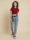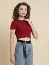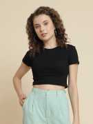 Celebrate effortless style with our Rib Crop Tshirt for winter wear. Its textured ribbed fabric adds a touch of sophistication and depth to your outfit, while the cropped design pairs perfectly with high-waisted bottoms. Versatile enough for everyday chic or a night out, this crop top makes a statement with comfort and fashion in mind.