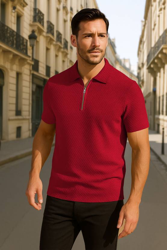 Elevate your casual wardrobe with our Self-Design Polo T-Shirt with Zipper, crafted for men who value both style and comfort. Available in Black, Maroon, Pink, Brown, and Beige, this versatile polo is perfect for everyday wear, weekend outings, or a casual evening out.